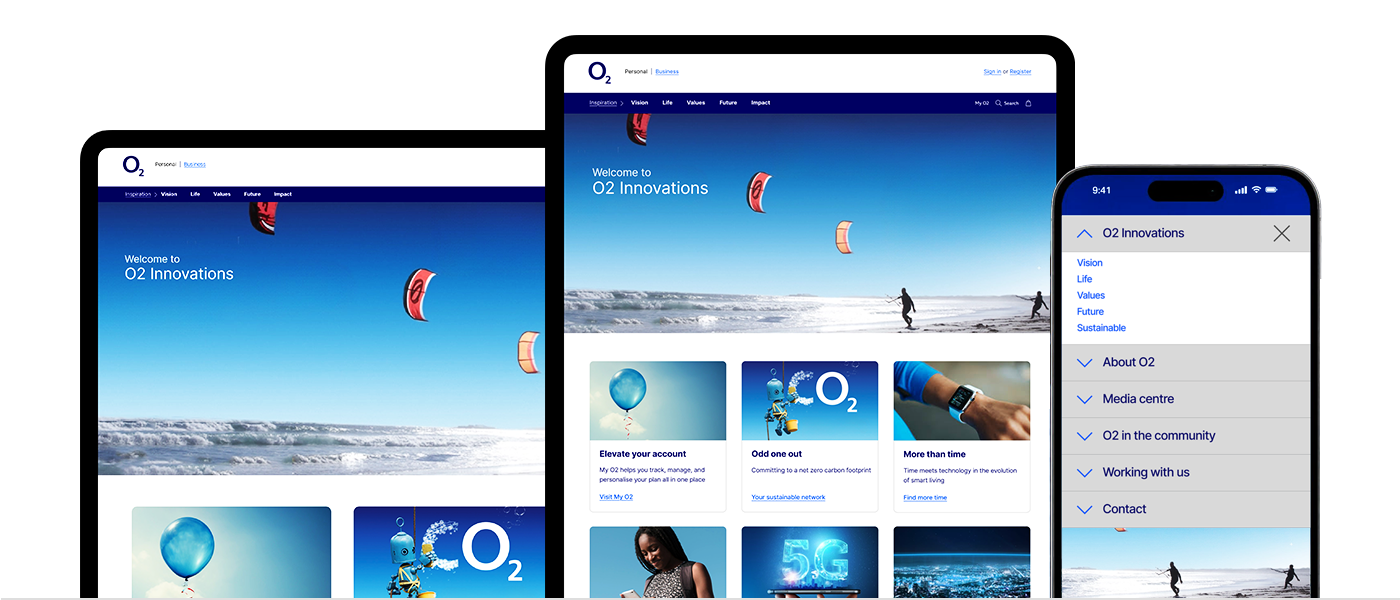 O2’s corporate presence extended beyond products and tariffs to communicate its broader role in technology and society. This project focused on designing a cross-platform corporate experience highlighting O2 in the community, digital inclusion initiatives, sustainability commitments, and responsible business values.